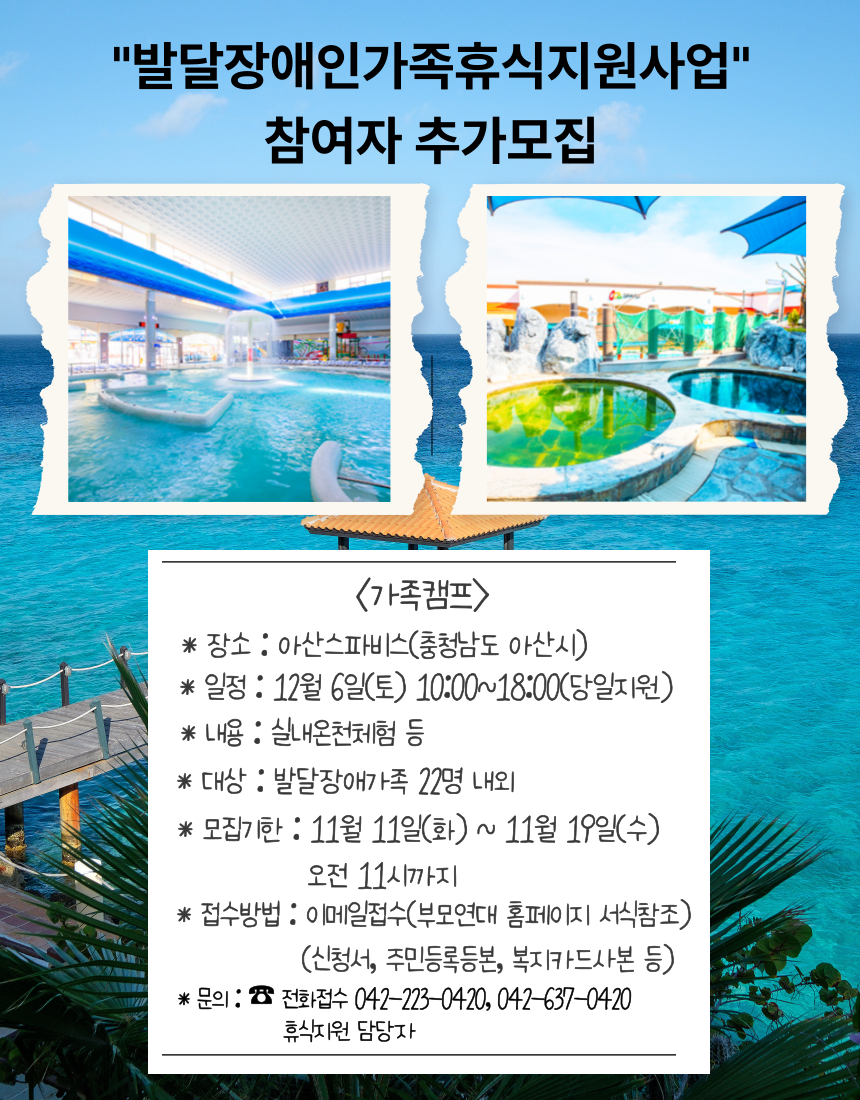 관심이 있으신 가정분들은 아래 포스터를 확인하여 주시길 바라며, 이번기회를 통해 휴식과 힐링, 새로운 경험을 함께 나누는 기회가 되었으면 좋겠습니다.